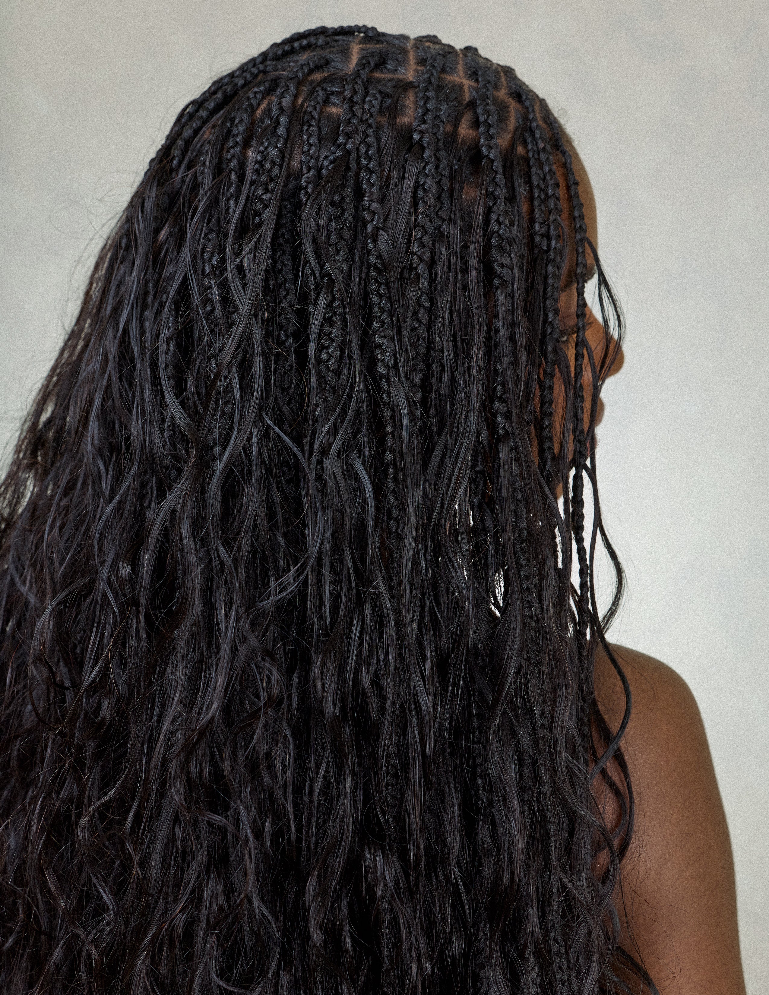 Important to know: This style is high maintenance. The bulk pieces are prone to tangling, andproper care determines how long your style lasts. Pool and salt water can alter the texture of the loose hair. If swimming, we recommend braiding the style into two large braids for easier management. This style is also heavier in weight due to the amount of hair used.