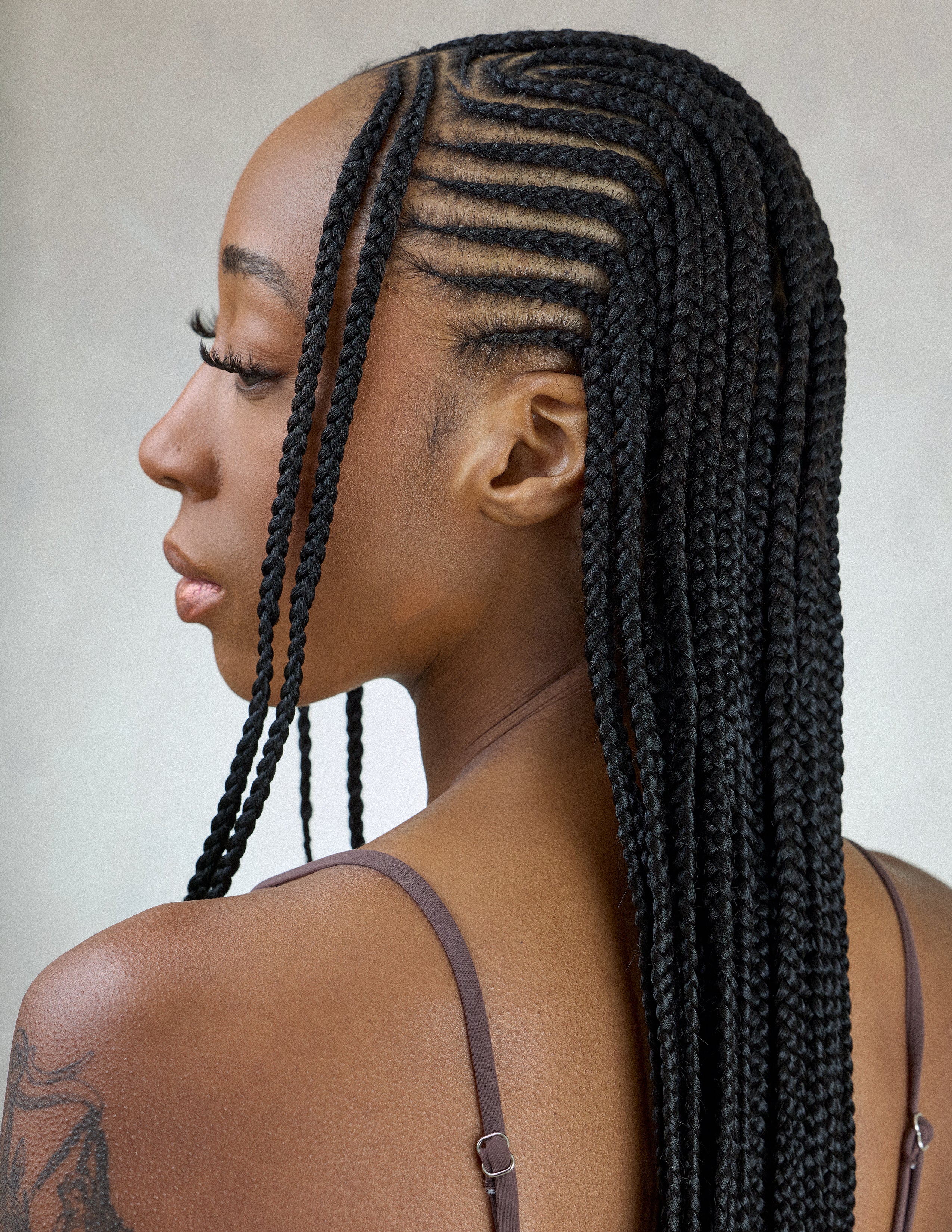 Traditional Fulani-style braids with cornrows in the front transitioning into small